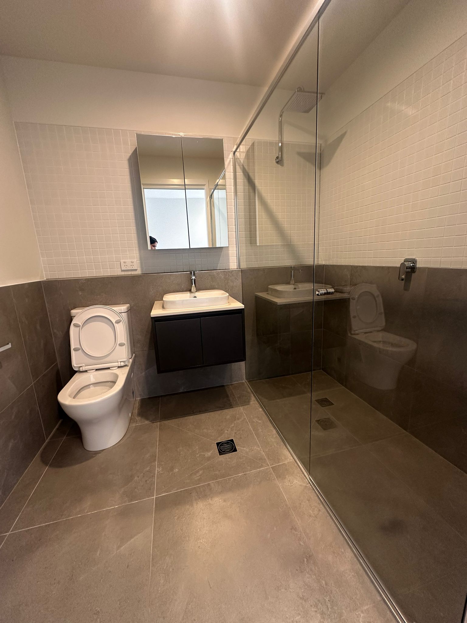2 contemporary bathrooms with designer fittings